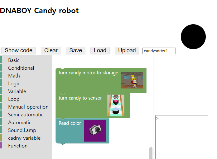 Step3. Run the code by sending block code to candy sorter machine
